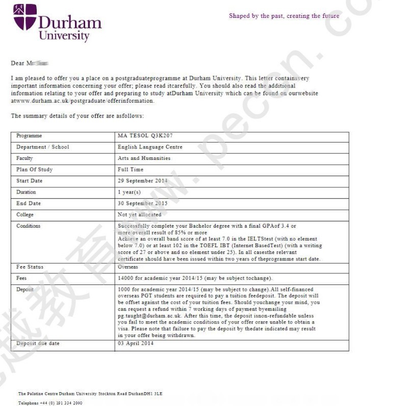恭喜優(yōu)越教育成功幫助這位孫同學申請到杜倫大學“對外英語教育”專業(yè),歡迎隨時在線咨詢優(yōu)越教育,我們的客服24小時在線,感謝您的咨詢!