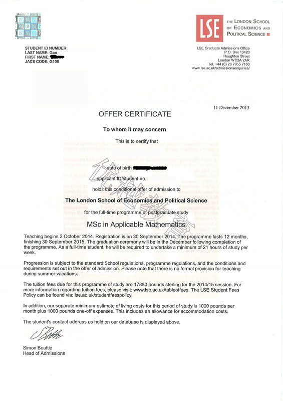 恭喜優(yōu)越教育成功幫助這位高同學(xué)成功申請到倫敦政治與經(jīng)濟(jì)學(xué)院研究生應(yīng)用數(shù)學(xué)專業(yè),歡迎隨時在線咨詢優(yōu)越教育,我們的客服24小時在線,感謝您的咨詢!