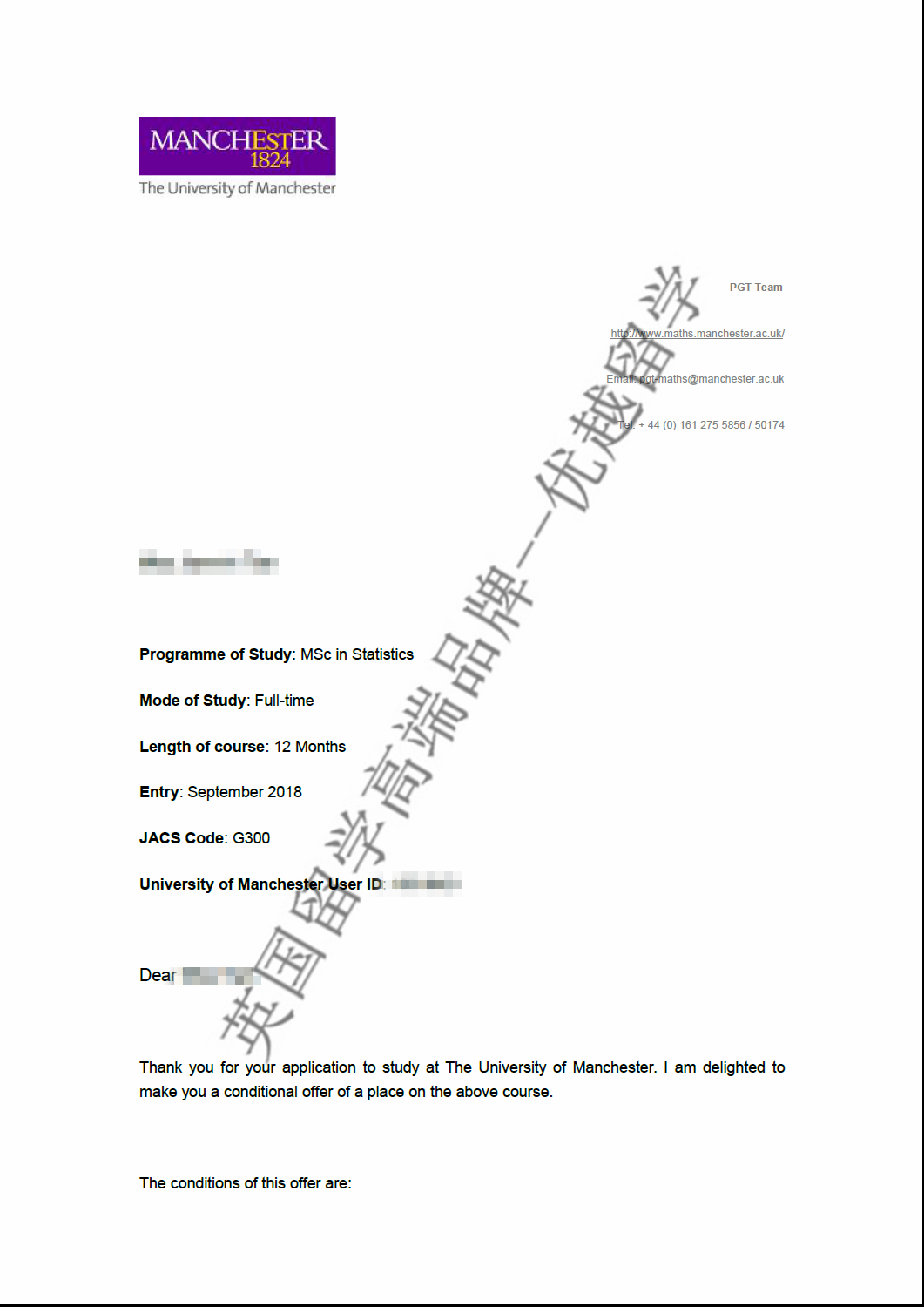 2018offer:恭喜陸同學(xué)獲得曼徹斯特大學(xué)統(tǒng)計學(xué)專業(yè)碩士通知書