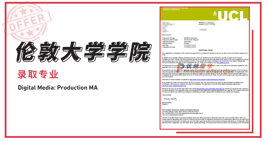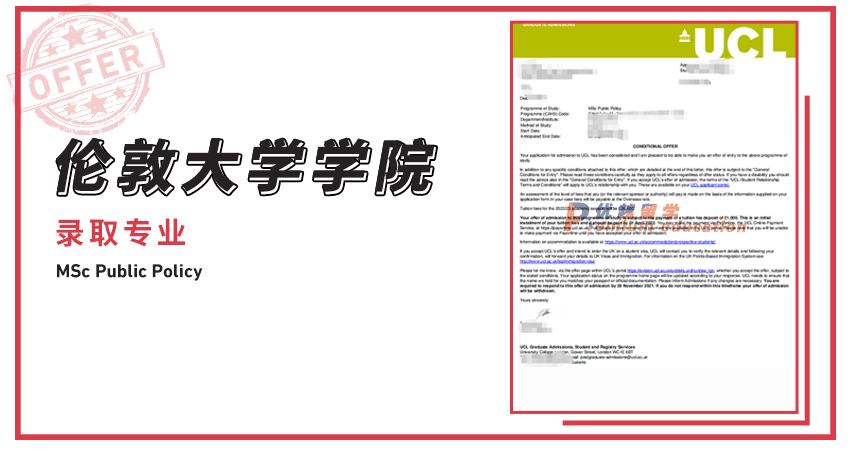 2021offer:恭喜李同學(xué)獲得倫敦大學(xué)學(xué)院經(jīng)濟(jì)學(xué)碩士通知書(shū)