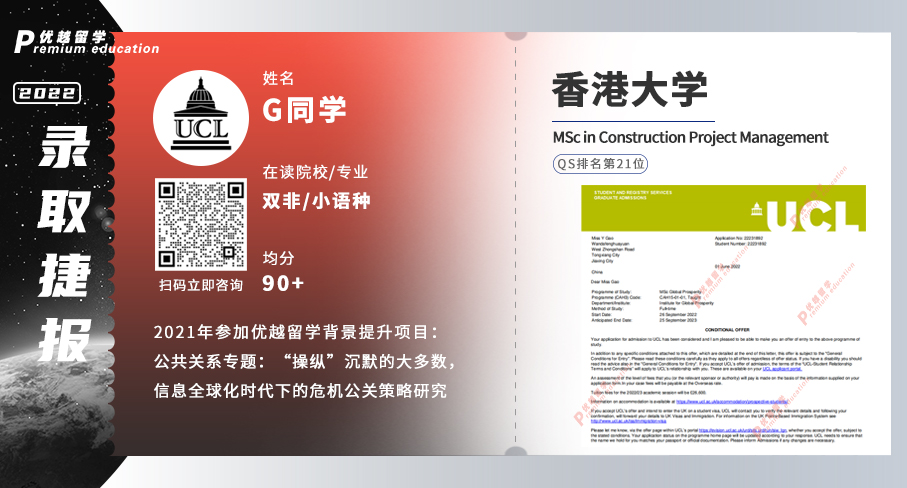 2022offer:恭喜高同學(xué)獲得倫敦大學(xué)學(xué)院全球繁榮理學(xué)碩士通知書(shū)
