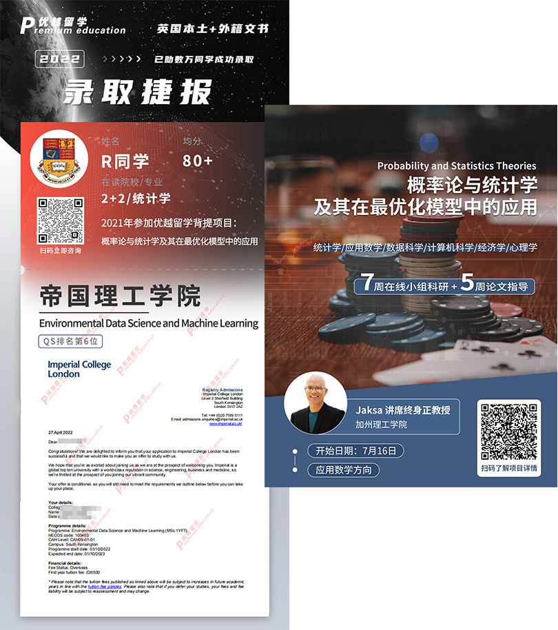 2022offer:恭喜趙同學獲得帝國理工學院環(huán)境數(shù)據(jù)科學和機器學習碩士通知書