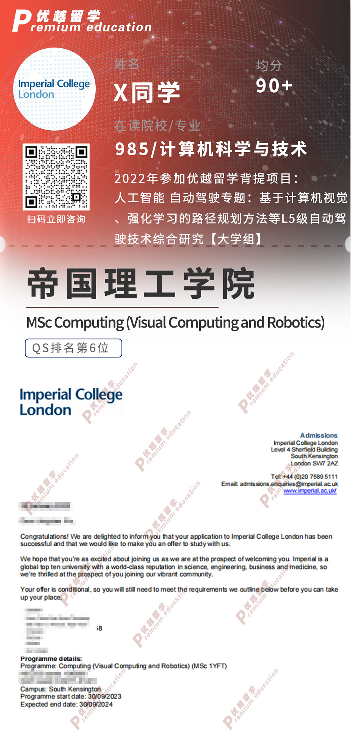 2023offer:恭喜X同學(xué)在碩士留學(xué)申請中獲得IC計算(視覺計算和機器人學(xué))碩士通知書。