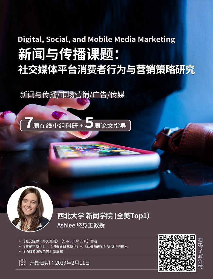 2.在本項目會介紹基本的傳播理論,從而了解數(shù)字、社交、移動媒體以及市場營銷。 通過一段時間的內(nèi)容學(xué)習,學(xué)生將為在該領(lǐng)域進行自己的研究,提出研究主題的構(gòu)想。 之后學(xué)生將練習定義研究問題,提出研究設(shè)計,最終收集和分析數(shù)據(jù)完成研究課題。