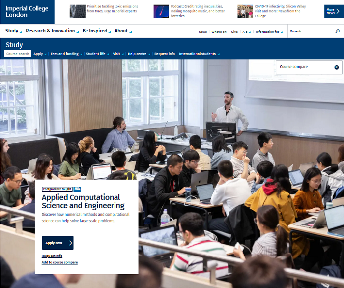該專業(yè)在帝國(guó)理工地球科學(xué)與工程系學(xué)院下面,是18年開設(shè)的一個(gè)非常新的項(xiàng)目,通過學(xué)習(xí)數(shù)值方法和計(jì)算科學(xué)的知識(shí),應(yīng)用新穎的科學(xué)和工程方法解決大規(guī)模問題。適用于數(shù)學(xué),物理科學(xué),地球物理學(xué),工程學(xué)以及計(jì)算機(jī)科學(xué)等學(xué)科的畢業(yè)生,每年錄取110名左右的學(xué)生。