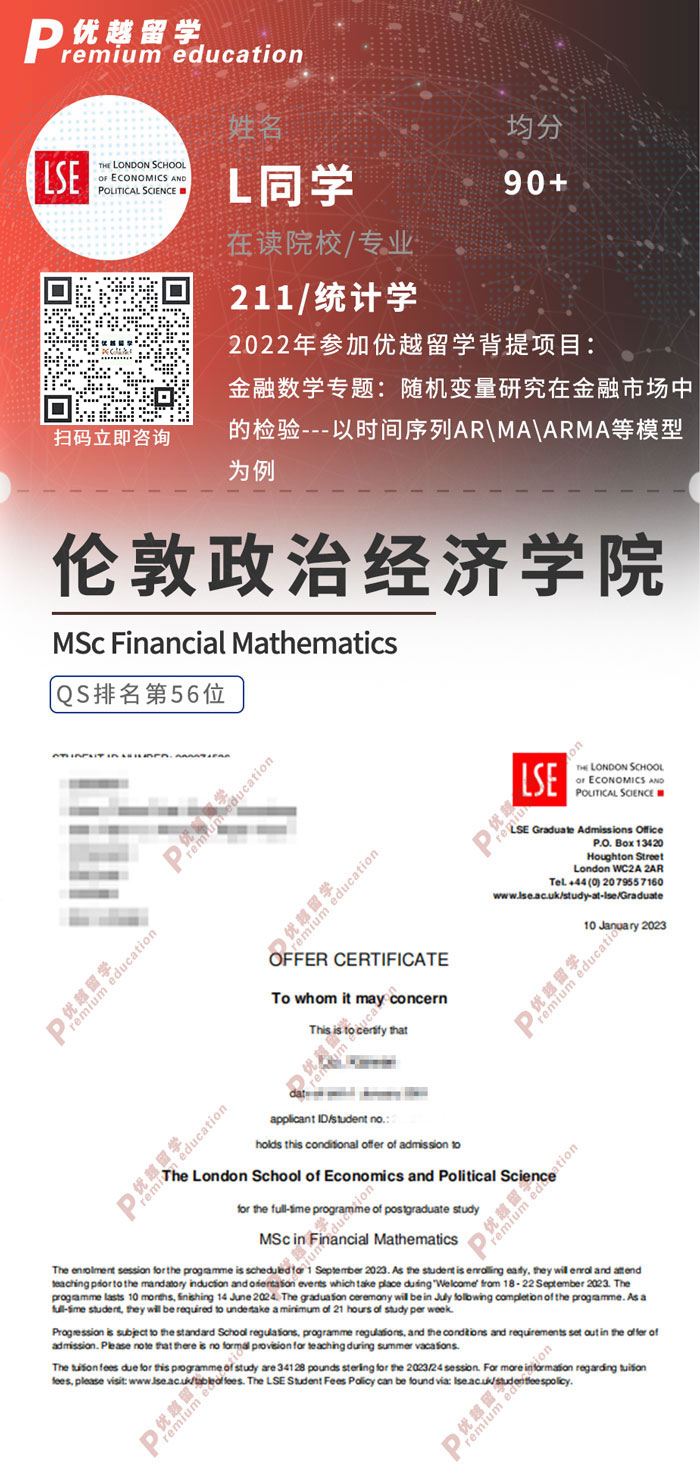 2023offer:恭喜Z同學(xué)在碩士留學(xué)申請中獲得LSE金融數(shù)學(xué)碩士通知書!