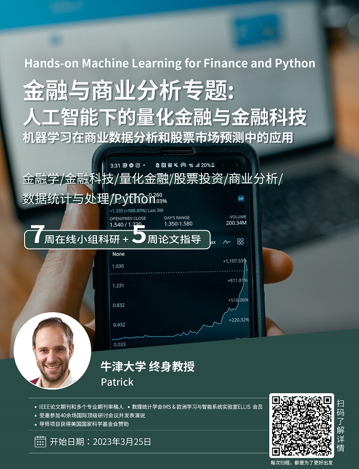 1.本項目適合適合希望修讀商業(yè)分析、金融等專業(yè)或者對Python機器學(xué)習(xí)在商業(yè)分析中的應(yīng)用感興趣的學(xué)生。學(xué)生需要具備線性代數(shù)及概率論與數(shù)理統(tǒng)計基礎(chǔ),會使用Python八大基礎(chǔ)語句;有商業(yè)數(shù)據(jù)分析經(jīng)驗的申請者優(yōu)先。