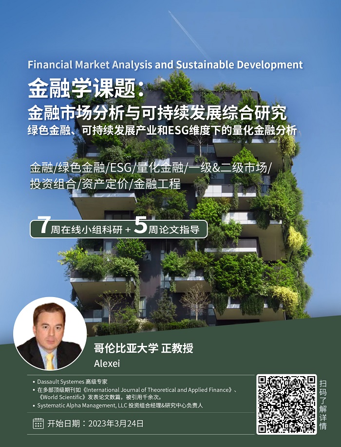1.本項目適合ESG、量化金融、綠色金融、證券投資等相關(guān)專業(yè)以及希望深入學習資本市場知識的學生;擁有基礎(chǔ)數(shù)學基礎(chǔ)和金融知識的學生優(yōu)先。
