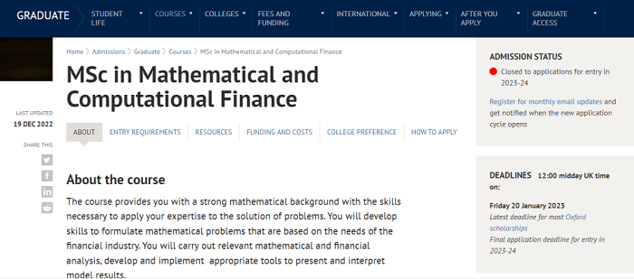 錄取專業(yè):MSc in Mathematical and Computational Finance