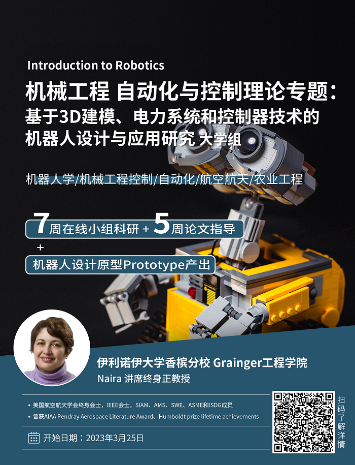 3.本項目將對介紹機器人學的研究方法與包括3D建模、電力系統(tǒng)設計、控制器在內(nèi)的常用技術,并將簡要討論與機器人相關的各種學科與應用實例。學生將在導師指導下逐步完成機器人的原型設計,在項目結(jié)束時提交項目報告,進行成果展示。