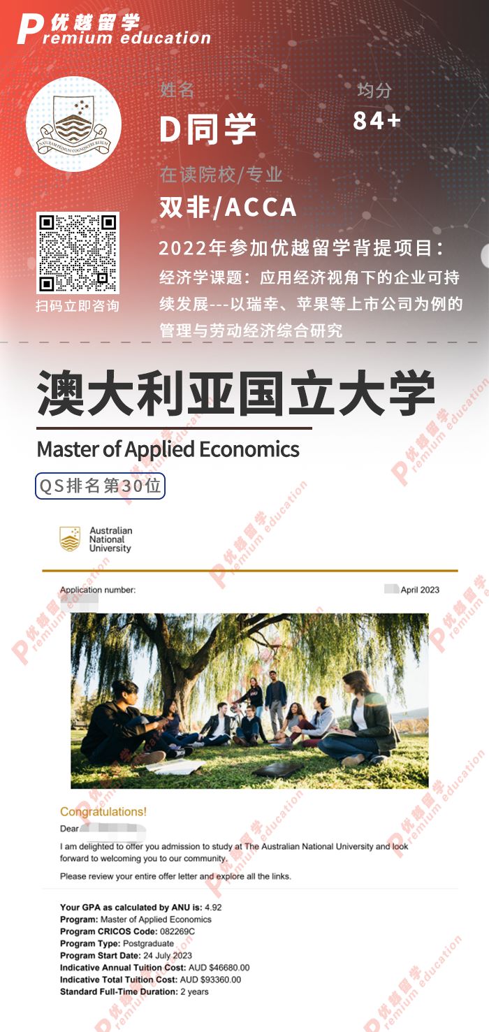 2023offer來(lái)襲!恭喜D同學(xué)在碩士留學(xué)申請(qǐng)中斬獲澳大利亞大學(xué)應(yīng)用經(jīng)濟(jì)學(xué)碩士通知書(shū)!