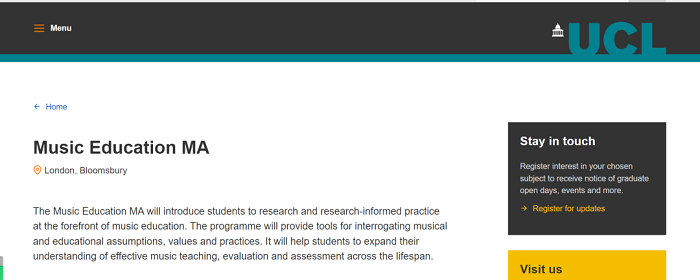 錄取專業(yè):Music Education MA