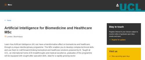 UCL計算機科學(xué)以其在 AI 突破中的作用而聞名,例如參與開發(fā)AlphaGo——第一個擊敗職業(yè)人類圍棋選手的計算機程序。該計劃的跨學(xué)科性質(zhì)使學(xué)生有機會與來自生物醫(yī)學(xué)和臨床科學(xué)以及社會科學(xué)和人文學(xué)科的專家進行互動。該項目中可以學(xué)習(xí)人工智能 (AI) 如何通過獨特的跨學(xué)科計劃對生物醫(yī)學(xué)和醫(yī)療保健產(chǎn)生變革性影響。
