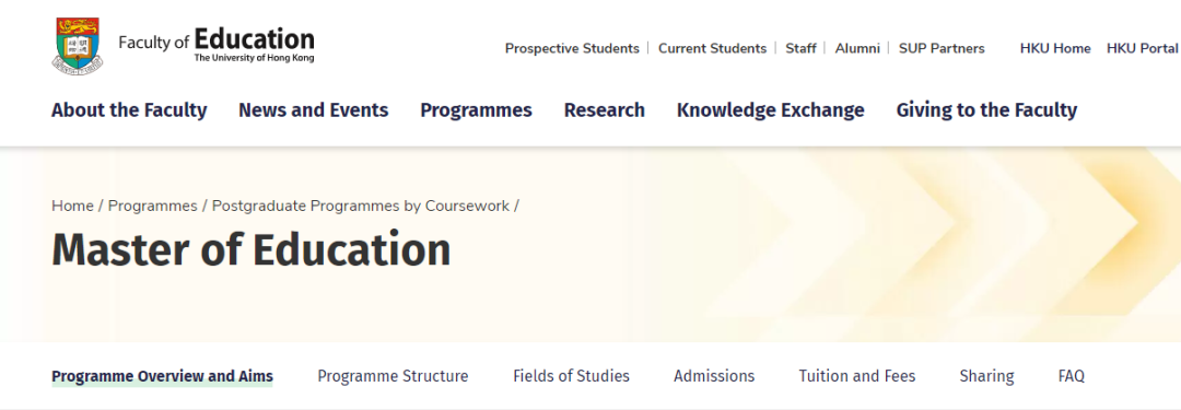 香港大學(xué)教育碩士 (MEd) 是面向,正在尋找機(jī)會(huì)擴(kuò)展其教育專(zhuān)業(yè)知識(shí)的教育專(zhuān)業(yè)人士的學(xué)位。旨在讓學(xué)生對(duì)教育作為一個(gè)研究領(lǐng)域有一個(gè)總體的了解,并重點(diǎn)掌握一個(gè)專(zhuān)業(yè)領(lǐng)域,并使他們具備理解教育研究的知識(shí)和技能。香港大學(xué)的教育碩士畢業(yè)生積極參與了香港和國(guó)外的學(xué)校行政、政策制定、成人和職業(yè)培訓(xùn)、教師教育、課程開(kāi)發(fā)、課堂教學(xué)、教育評(píng)估和評(píng)估以及教育研究。