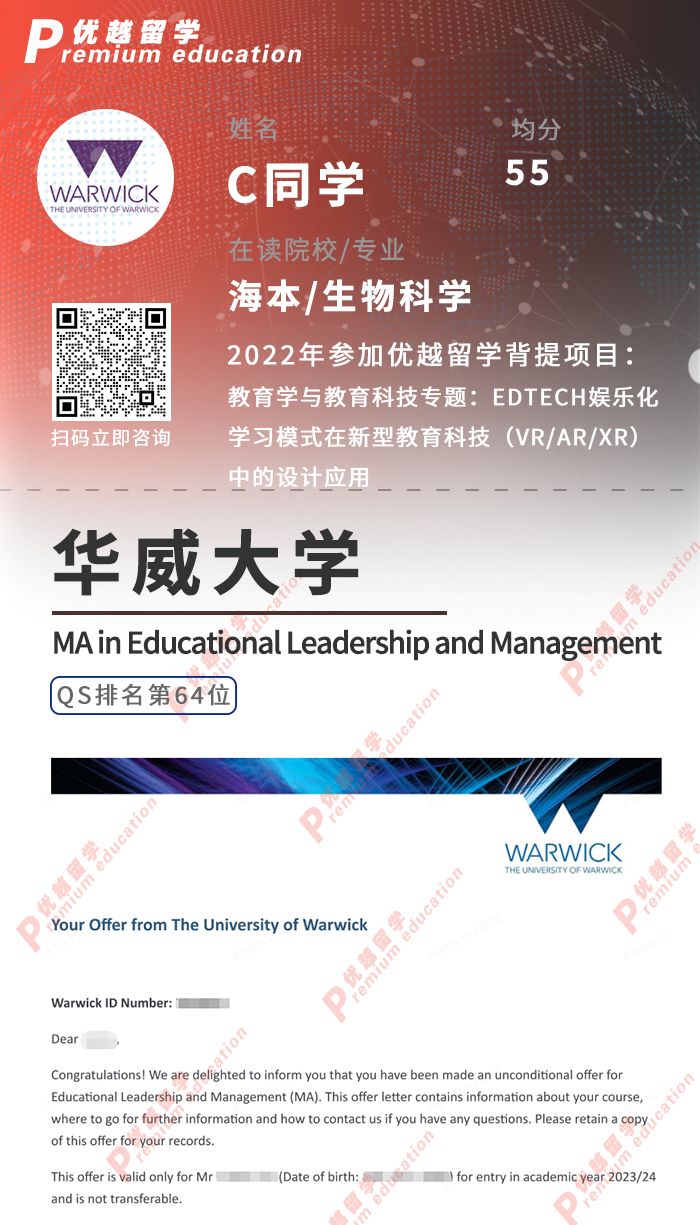 2023offer來襲!恭喜C同學(xué)在碩士留學(xué)申請中斬獲華威大學(xué)食品安全碩士通知書!