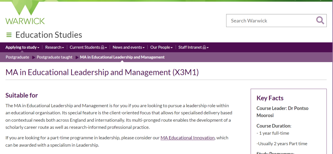 此課程將使學(xué)生能夠發(fā)展和提高學(xué)生作為教育領(lǐng)導(dǎo)者的能力。它還將增強學(xué)生的反思和批判能力,為他們下一步的職業(yè)發(fā)展打下良好的基礎(chǔ)。該課程的應(yīng)屆畢業(yè)生包括課堂領(lǐng)導(dǎo)創(chuàng)新者、中層領(lǐng)導(dǎo)、高級管理人員、地方當(dāng)局顧問和獨立顧問,以及現(xiàn)在擔(dān)任一系列高級職位的國際教育工作者。每年都有一些該課程的畢業(yè)生繼續(xù)攻讀博士學(xué)位。