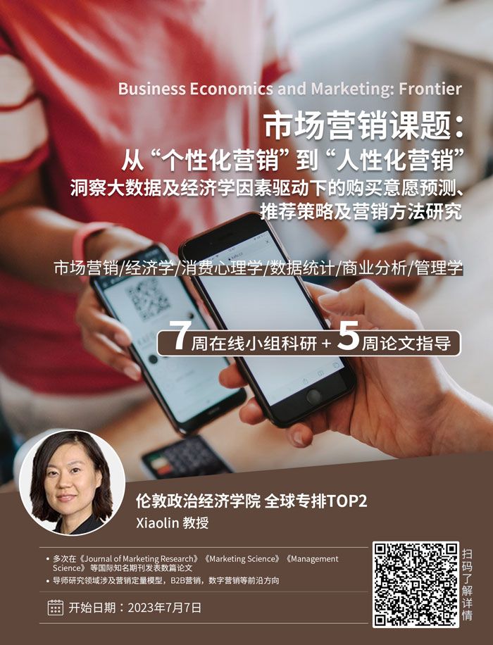 2、項(xiàng)目導(dǎo)師是倫敦政治經(jīng)濟(jì)學(xué)院教授,將運(yùn)用數(shù)據(jù)統(tǒng)計(jì)方法,幫助學(xué)生量化分析現(xiàn)實(shí)中的市場(chǎng)營銷方案,包括數(shù)據(jù)化的市場(chǎng)調(diào)研和市場(chǎng)分析方法。