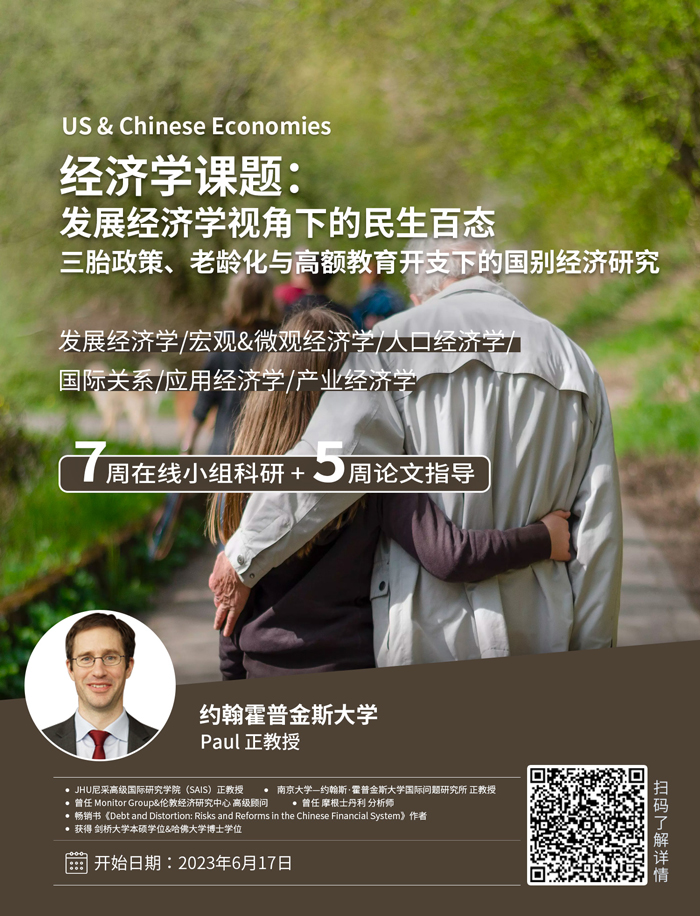 3.本課程研究范圍涵蓋多個(gè)主題,將包括人口統(tǒng)計(jì)學(xué)(獨(dú)生子女政策真的導(dǎo)致了中國(guó)的低出生率嗎?結(jié)束這一政策會(huì)有幫助嗎?),經(jīng)濟(jì)增長(zhǎng)(為什么中國(guó)經(jīng)濟(jì)增長(zhǎng)如此之快,持續(xù)如此之久,并能持續(xù)下去?),經(jīng)濟(jì)不平等(是什么導(dǎo)致美國(guó)和中國(guó)的不平等加劇,應(yīng)該對(duì)此采取什么措施?),教育支出(助學(xué)貸款是個(gè)好主意嗎?),醫(yī)療保健政策與經(jīng)濟(jì)(為什么美國(guó)的醫(yī)療保健費(fèi)用如此之高,而中國(guó)的抗生素處方如此過(guò)量?),金融系統(tǒng)對(duì)比(美國(guó)和中國(guó)金融體系的顯著特征是什么?),冠狀病毒危機(jī)背后的經(jīng)濟(jì)發(fā)展(這將如何影響經(jīng)濟(jì)?)等。