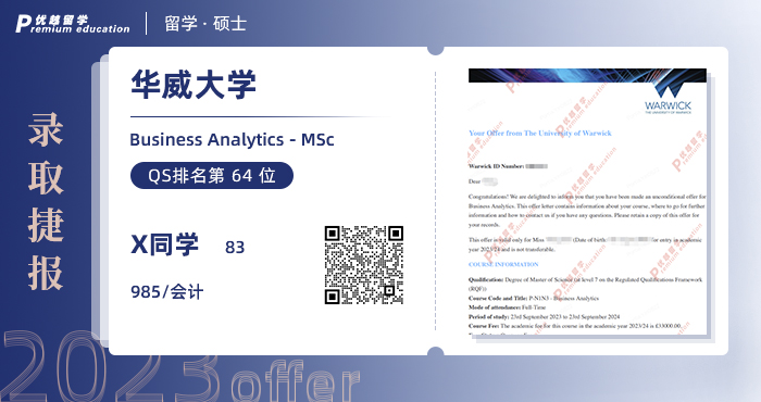 2023offer來襲!恭喜X同學(xué)在碩士留學(xué)申請中斬獲華威大學(xué)商業(yè)分析碩士通知書!