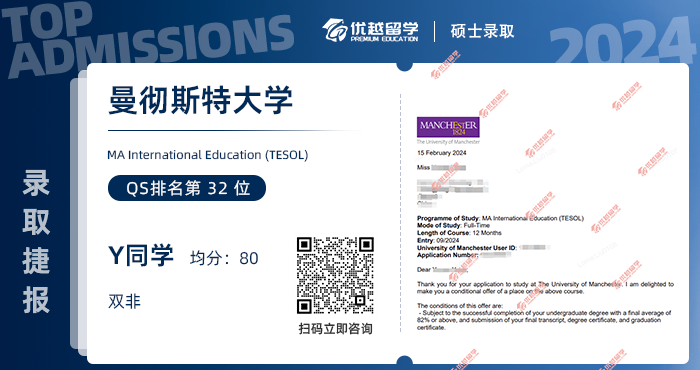 以上是【曼徹斯特大學offer雨來襲!快看看曼大更愛什么樣的學生 ?】相關(guān)的全部內(nèi)容,查看更多【offer榜單】、【名校案例】相關(guān)資訊可前往【優(yōu)越留學】首頁!世界名校申請,找優(yōu)越留學!選校定校、申請規(guī)劃、文書寫作、背景提升、方案定制一套搞定!點擊【在線咨詢】,優(yōu)越留學顧問24h在線為您一對一解答!
