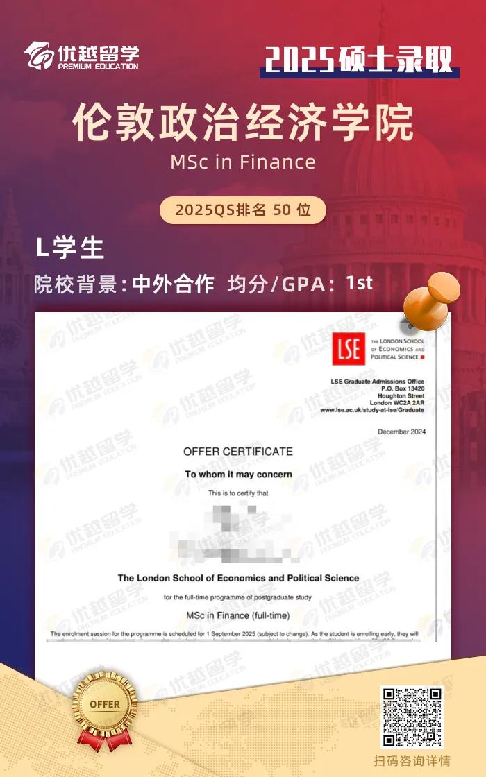 以上是【【倫敦政治經(jīng)濟(jì)學(xué)院LSE】發(fā)offer了!優(yōu)越留學(xué)收獲金融碩士一枚】相關(guān)的全部?jī)?nèi)容,查看更多【offer榜單】、【名校案例】相關(guān)資訊可前往【優(yōu)越留學(xué)】首頁(yè)!世界名校申請(qǐng),找優(yōu)越留學(xué)!選校定校、申請(qǐng)規(guī)劃、文書(shū)寫(xiě)作、背景提升、方案定制一套搞定!點(diǎn)擊【在線咨詢】,優(yōu)越留學(xué)顧問(wèn)24h在線為您一對(duì)一解答!