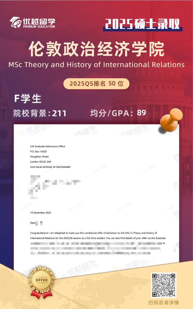 以上是【英國(guó)G5碩士offer+1:【倫敦政治經(jīng)濟(jì)學(xué)院LSE】國(guó)際關(guān)系理論與歷史專業(yè)】相關(guān)的全部?jī)?nèi)容,查看更多【offer榜單】、【名校案例】相關(guān)資訊可前往【優(yōu)越留學(xué)】首頁!世界名校申請(qǐng),找優(yōu)越留學(xué)!選校定校、申請(qǐng)規(guī)劃、文書寫作、背景提升、方案定制一套搞定!點(diǎn)擊【在線咨詢】,優(yōu)越留學(xué)顧問24h在線為您一對(duì)一解答!