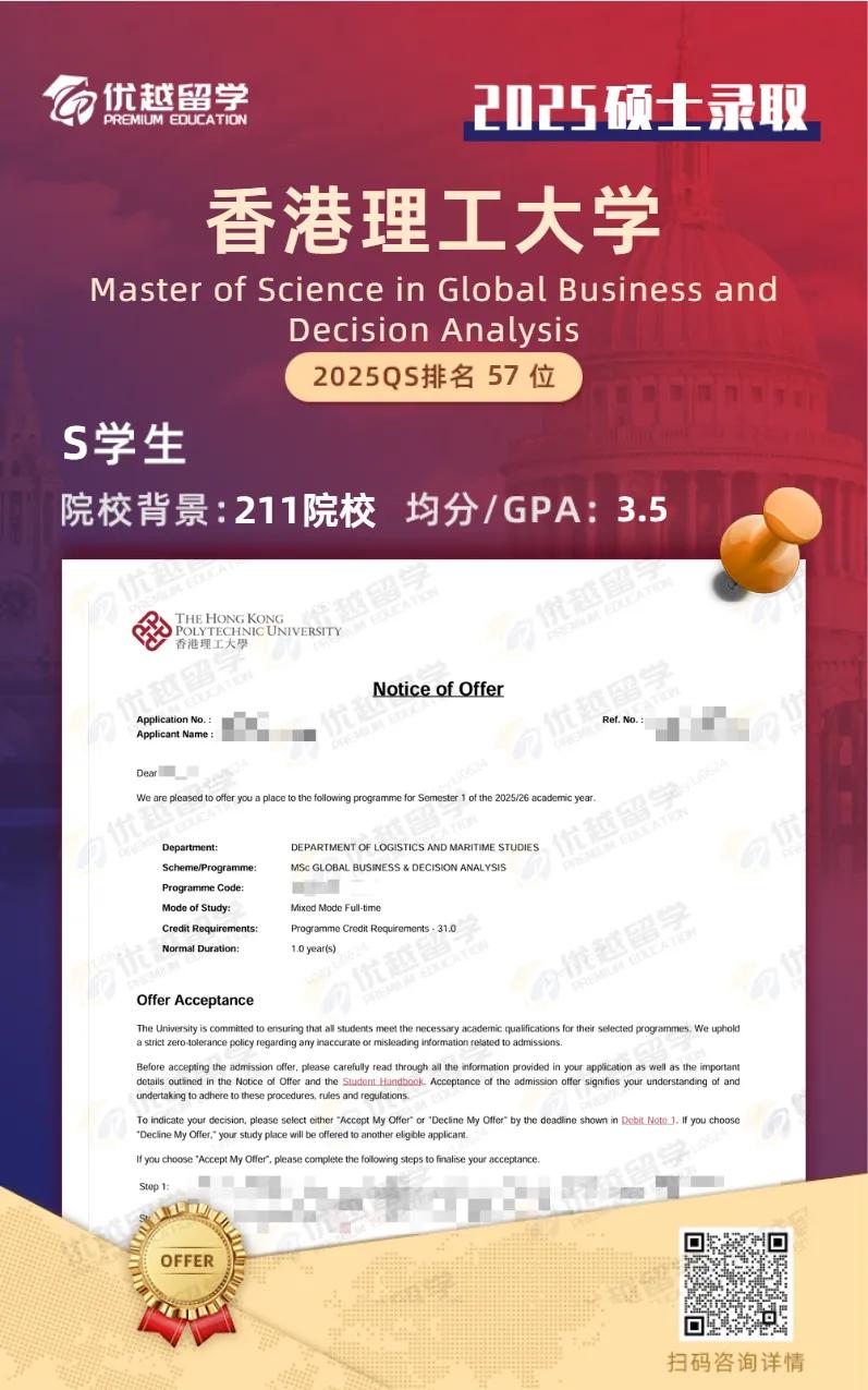 以上是【25fall香港研究生offer:211錄取【香港理工大學(xué)】全球商業(yè)與決策分析】相關(guān)的全部內(nèi)容,查看更多【offer榜單】、【名校案例】相關(guān)資訊可前往【優(yōu)越留學(xué)】首頁!世界名校申請,找優(yōu)越留學(xué)!選校定校、申請規(guī)劃、文書寫作、背景提升、方案定制一套搞定!點(diǎn)擊【在線咨詢】,優(yōu)越留學(xué)顧問24h在線為您一對一解答!