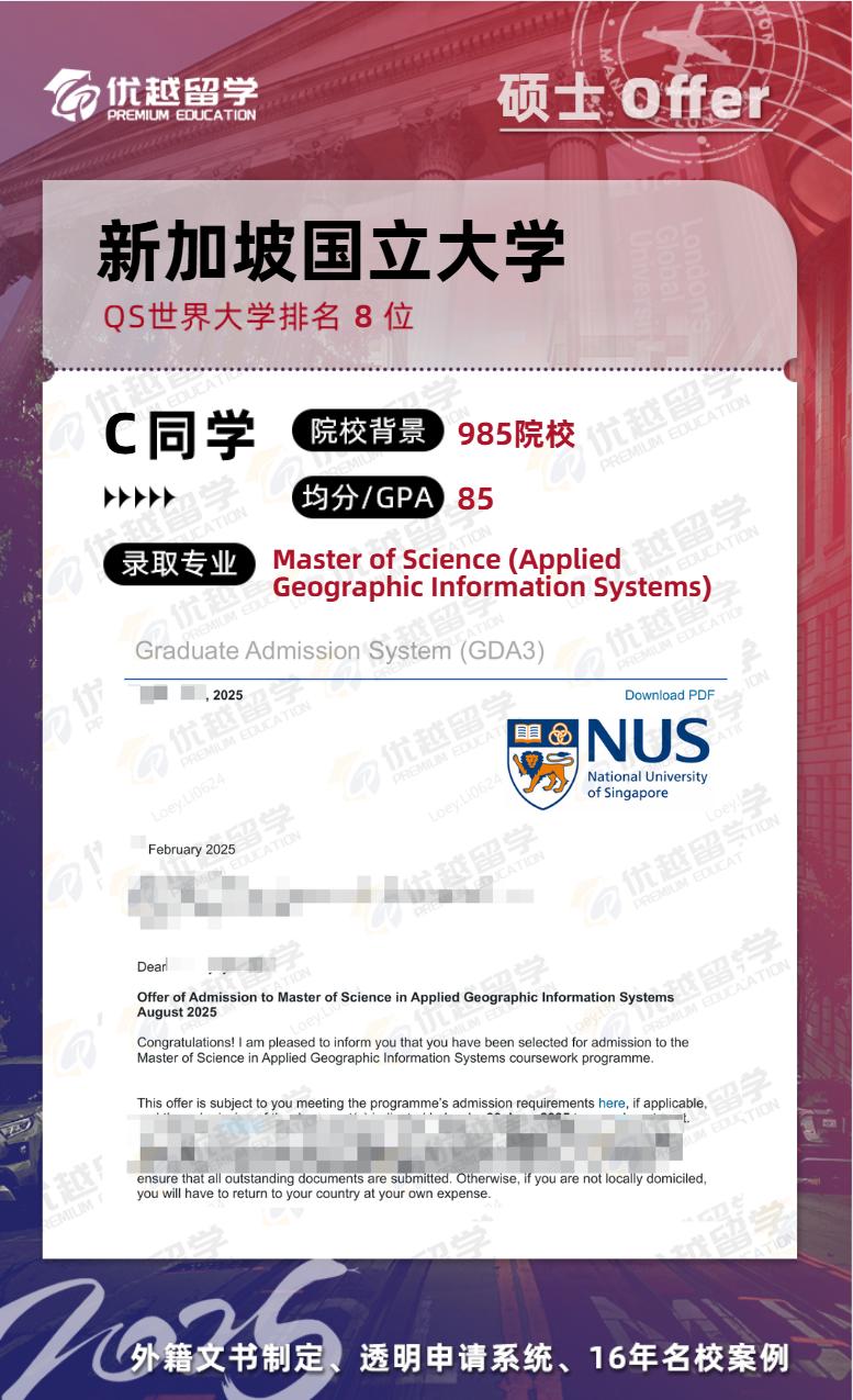 以上是【25fall新加坡留學(xué)中介offer:【新加坡國(guó)立大學(xué)NUS】地理信息系統(tǒng)碩士】相關(guān)的全部?jī)?nèi)容,查看更多【offer榜單】、【名校案例】相關(guān)資訊可前往【優(yōu)越留學(xué)】首頁(yè)!世界名校申請(qǐng),找優(yōu)越留學(xué)!選校定校、申請(qǐng)規(guī)劃、文書寫作、背景提升、方案定制一套搞定!點(diǎn)擊【在線咨詢】,優(yōu)越留學(xué)顧問(wèn)24h在線為您一對(duì)一解答!
