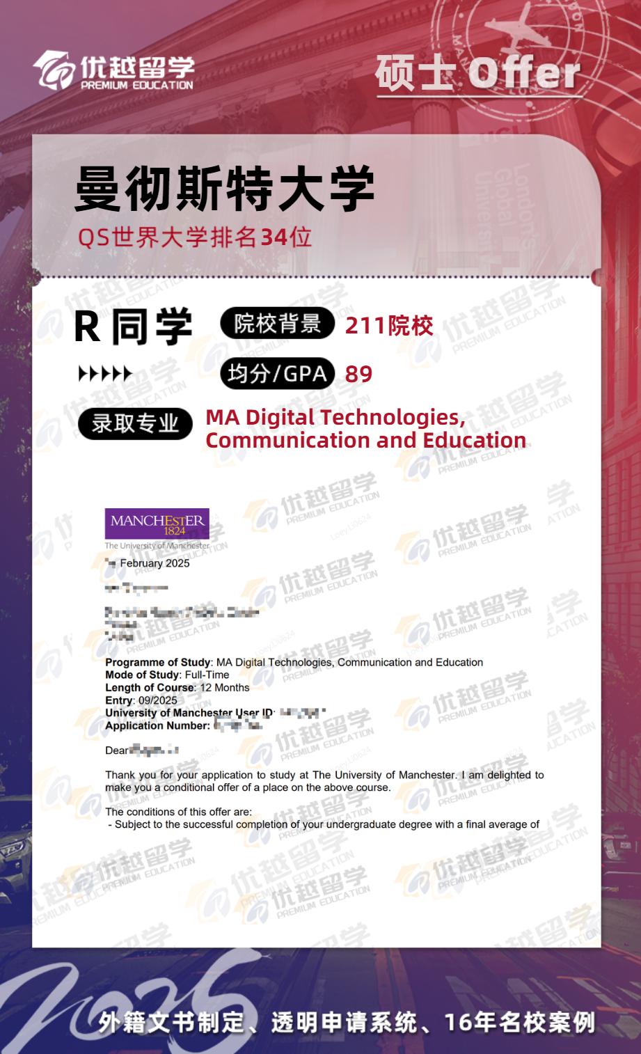 P學長是在去年6月來到優(yōu)越的,用時4個月的時間,最終跨申上岸曼大國際教育專業(yè)。接下來,就跟優(yōu)越君一起看看,P學長為了英國研究生留學申請都做了哪些動作~