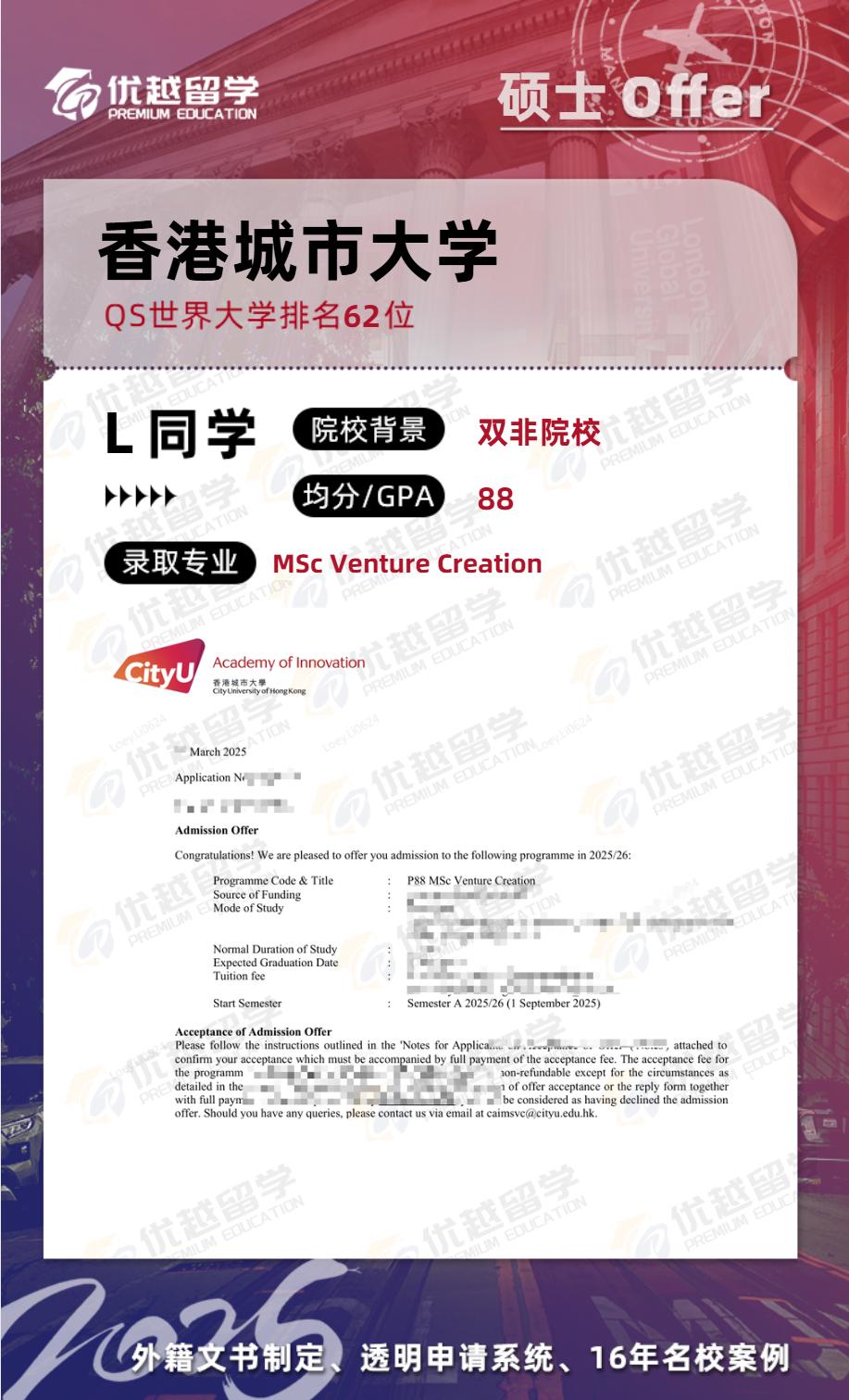 恭喜優(yōu)越學員碩士研究生申請首戰(zhàn)告捷,拿下香港城市大學風險投資創(chuàng)新創(chuàng)業(yè)碩士offer。接下來,就跟優(yōu)越君一起看看這位同學的上岸歷程~