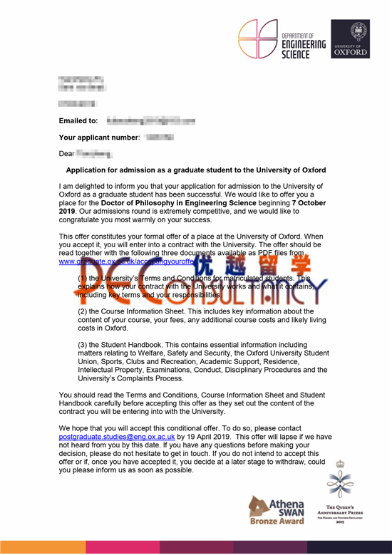 2019offer:恭喜王同學(xué)獲得牛津大學(xué)(世界排名:4)土木工程方向博士通知書