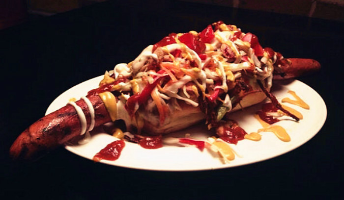 這家店的主打熱狗和漢堡,菜單上的名字都很詼諧,讀完往后本來不知道啥意思,要仔細(xì)看每道菜里畢竟有啥主料和配料才華知道自個點啥,比如他家的招牌 熱狗叫Widowmaker 是一個巨型24英寸長的用純牛肉做成的熱狗再加上鋪滿了各種輔料和奶酪,切實本來讓人口水直流。