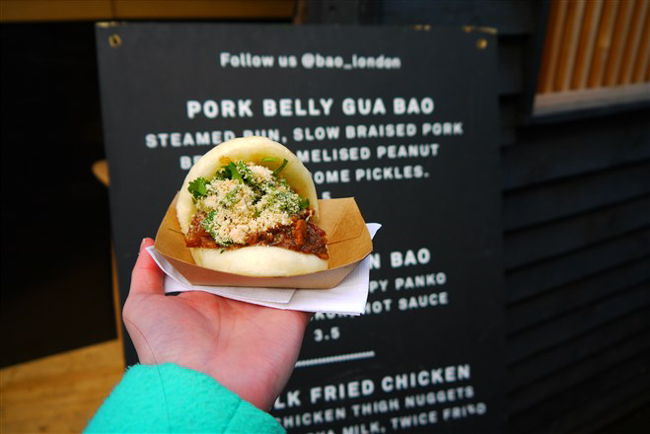 每個周六都可以在Netil Market看到臺灣小吃店Bao Bar,3.50鎊一個的刈包是招牌食物,另外這里還有鹽酥雞賣哦!