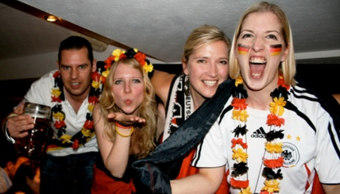 雖然德國隊(duì)令人意外地止步半決賽,但是這一點(diǎn)不妨礙倫敦的球迷們?nèi)惗卣诘牡聡【莆菘辞???谖洞颊牡聡【?、令人垂涎的德國香腸、穿著傳統(tǒng)裙裝的德國女孩,再加上播放足球比賽的電視機(jī),要想在倫敦找到一個能把這四個元素湊在一起的地方可不多,巴伐利亞啤酒屋(Bavarian Beerhouse)就是其中一個。在這里,你不僅能感受到“大口吃肉,大口喝酒”的豪邁,還能欣賞到讓人熱血沸騰的足球比賽。