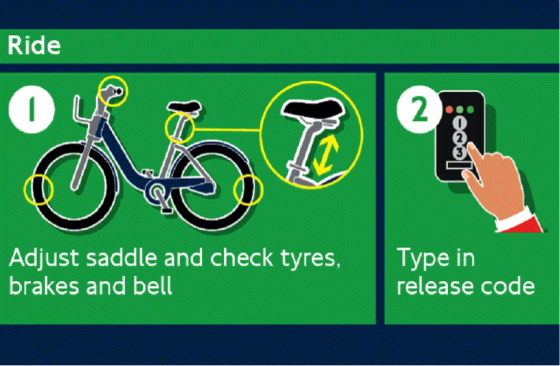 這時候我們就可以選擇自行車了,大家注意選車的時候要仔細查看車胎,車鈴,剎車把還有座椅是不是都是完好的。每輛自行車左邊會有一排數(shù)字按鈕,這里就輸入我們剛剛拿到的那5位密碼就好了,等到右邊的綠燈亮了就可以取車啦。拿到車以后大家可以根據(jù)自己的身高調(diào)整座椅,然后就可以騎著走啦。