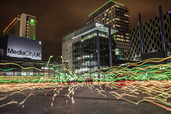 ??如果你以為MediaCity UK只有辦公樓,那可就錯過了很多精彩,這里總是時不時的會帶來驚喜。比如去年3月的時候有一個藝術(shù)項目叫Speed of Light 。上百個志愿者在這里穿戴LED燈飾裝備慢跑,配合中央控制的閃爍效果和音樂,著實震撼了一把。更讓人差點hold不住的高大上事件我還經(jīng)歷過一大早起來樓下停滿了80輛超級跑車,原來是Super Car Driver (SCD)超跑俱樂部舉辦賽車接力,起點選在了這里,這種養(yǎng)眼的福利允許我小小尖叫一下。