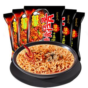 說(shuō)到韓國(guó)泡面,還有一種口味不得不提,小編也是愛(ài)它愛(ài)到癡迷的程度,真的是好吃的無(wú)法用語(yǔ)言形容有木有。這是個(gè)拌面,不是泡面哦,泡好之后要把水都倒掉那種。非常辣,一口下去,立馬找到自己的胃在哪兒,因?yàn)轳R上就有淡淡的燒灼感。要友情提醒大家?guī)拙?,這個(gè)泡面真的是相當(dāng)辣,十分辣,就連小編如此能吃辣的人,吃完一碗之后,嘴唇都跟《東成西就》里面梁朝偉的香腸嘴一樣,而且聽(tīng)說(shuō)吃多以后會(huì)造成一丟丟的,啊咳,便秘(因?yàn)閷?shí)在太辣了,排出體外都有一點(diǎn)困難)。所以說(shuō),不太能吃辣的同學(xué),以及胃動(dòng)力不太強(qiáng)的同學(xué),還是量力而行?。?br>