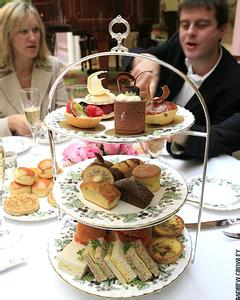 下午茶:英國的下午茶有著悠久的歷史,傳統(tǒng)的下午茶有可口的三明治,各種面包甜點(diǎn),還有由奶油和果醬涂抹的烤餅等食物。另外便是飲茶了,英國的茶水以紅茶為主,也有其他種類的茶可根據(jù)個(gè)人口味來選擇。正式的下午茶一般壘成三層架構(gòu)的形式,,最下一層是放置各種口味的三明治,中間一層是英國傳統(tǒng)的點(diǎn)心司康餅,最上一層是小蛋糕和水果等,吃的時(shí)候從下往上開始。