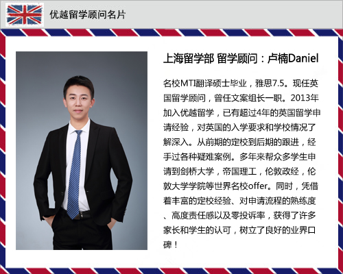 以上是英國(guó)商科碩士留學(xué)申請(qǐng)材料準(zhǔn)備的一個(gè)簡(jiǎn)單介紹,有感興趣的同學(xué)可以來電咨詢優(yōu)越教育Daniel老師做進(jìn)一步了解