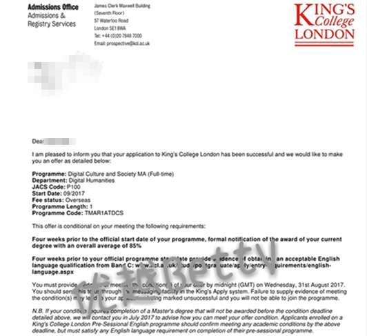 學(xué)生背景:M同學(xué),2017年6月本科畢業(yè),申請2017年9月入學(xué)的英國研究生,浙江傳媒學(xué)院,數(shù)字傳媒藝術(shù)專業(yè),均分85,無雅思申請,拿到了KCL:Digital Culture and Society MA (Full-time)專業(yè)的offer。