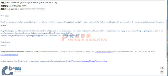 6月8日,學(xué)校給到了我們argue信的回復(fù),學(xué)校同意重新考慮學(xué)生的申請,把學(xué)生重新放在了等待名單里面。