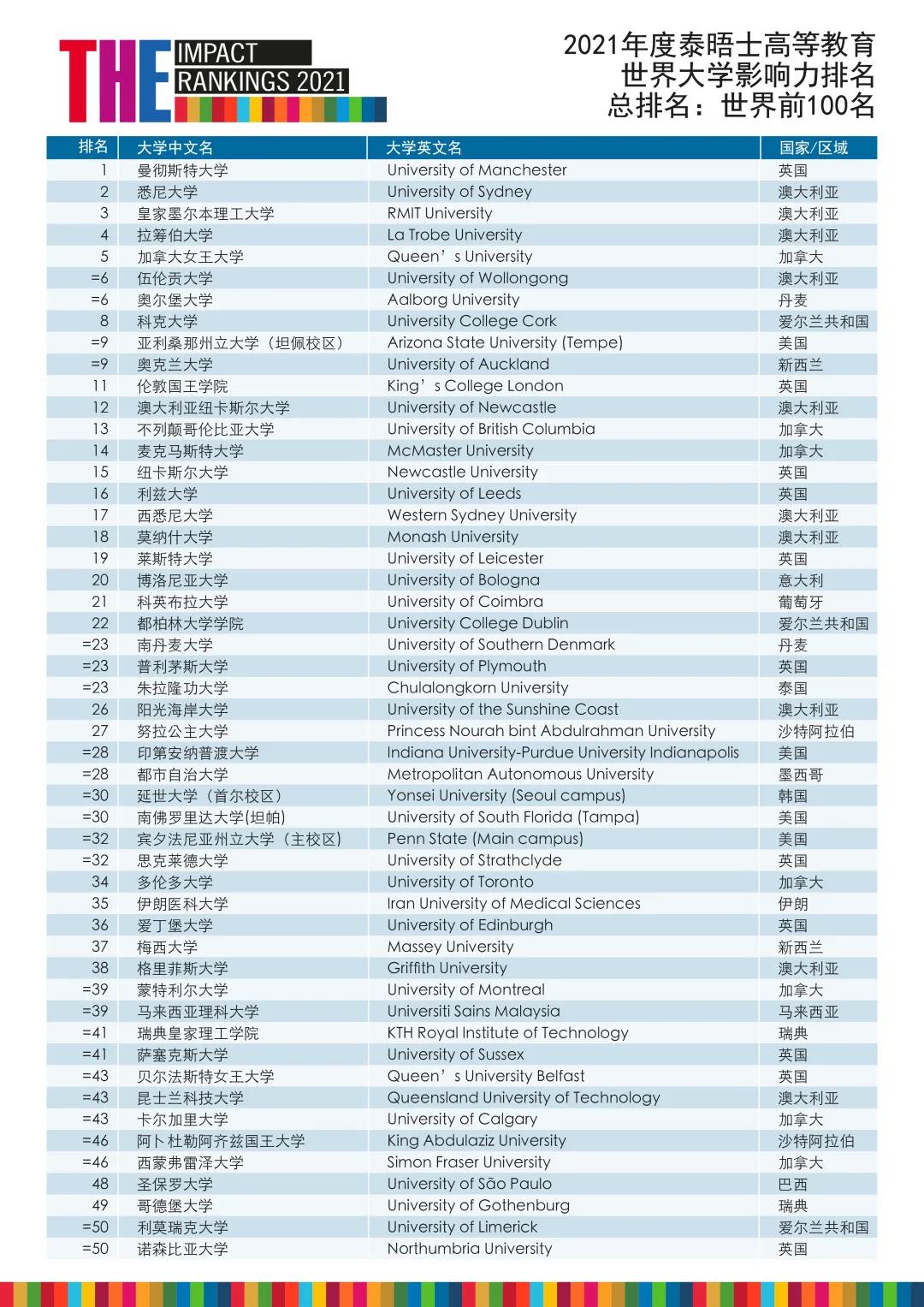 4月21日晚7點,泰晤士高等教育(THE) 發(fā)布了2021年度世界大學影響力排名,這也是泰晤士第3年發(fā)布該排名。