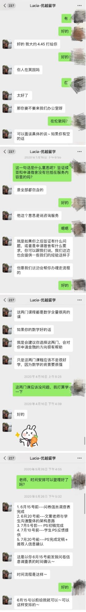 優(yōu)越打動我的理由有很多:第?,優(yōu)越在國內(nèi)和英國都設(shè)有辦公室的,?且深耕英國留學申請很多年,對于當時在英國留學的我來說,我覺得可以不?擔?時差的問題,隨時溝通,就能夠??提?申請的效率;第?,在前期我與我的顧問Lucia咨詢的過程中,她的熱情真的打動了我,真的做到了有問必答,這真的給了我很?的信?相信后續(xù)的申請過程中,我可以隨時聯(lián)系我的申請團隊,?且他們也能過及時的解決我的問題以及給我提供幫助。這個真的是?伙伴們在前期和中介溝通的時候就很需要注意的問題,我們可以嘗試著問問?些申請相關(guān)的問題,例如把??的background告訴咨詢顧問,看顧問能不能根據(jù)??的背景和優(yōu)劣勢來初步提供?個合理的選校?案,也可以問問中介對于申請的流程和時間節(jié)點的問題,雖然這些都是很基礎(chǔ)的問題,但是真的能過看出?個中介的態(tài)度和專業(yè)程度。?且,還可以參考中介以往成功的申請案例,看是否有與??專業(yè)背景相符合的,這樣的話,我們也可以知道這個中介和顧問?師擅?于什么?向和專業(yè),這樣也能選擇出和??適配度最?的;第三,選擇優(yōu)越很重要的?點就是優(yōu)越的?書服務。?家都知道,?書是申請中?分重要的?環(huán),特別是英美申請中。如果說績點,語?成績是我們的硬件的話,那么?書就是我們申請的軟實?,學校的申請審理官就是靠?書來了解你的性格,對于專業(yè)的理解,對于??未來的職業(yè)學習的規(guī)劃,這個時候我們是否能夠靠?書來塑造出?個?體的形象來打動審理官就顯得?關(guān)重要了。在和Lucia咨詢的過程中,她給我展示了?部分優(yōu)越的?書團隊所寫的以及修改的?書,清楚的?書結(jié)構(gòu),縝密的語句邏輯,精準地道的?詞,也更加堅定了我選擇優(yōu)越的決?。?且,優(yōu)越還可以提供專?的外籍?書顧問團隊,這對于對?書要求很?的?伙伴真的是?個很不錯的選擇。