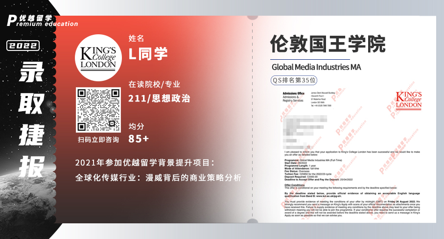 ? 【轉(zhuǎn)專(zhuān)業(yè)申請(qǐng)】放棄英專(zhuān)跨申傳媒,拿下全英第三的KCL傳媒offer!