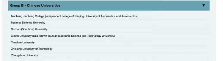 第一所院校就有意思了,可能是UCL認(rèn)為它某些學(xué)科方向比較強(qiáng)吧,但是不得不吐槽一下,南航本校都不在Group A或者Group B,確實有點(diǎn)想不通。