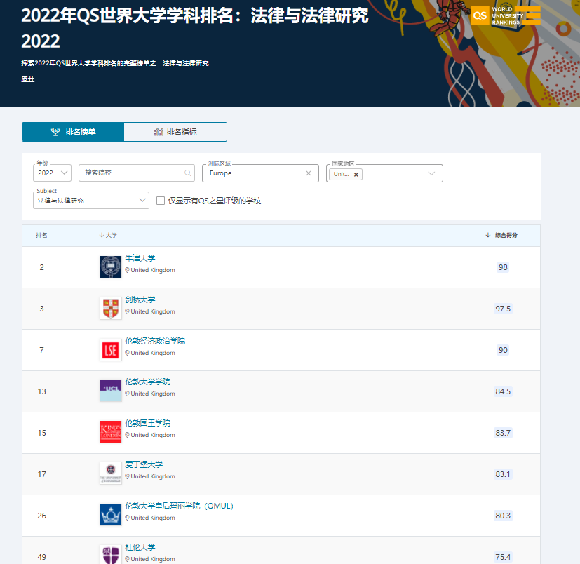 英國作為英美法系的起源地,可想而知法學(xué)一直也是大多學(xué)生熱門的專業(yè)之一,而在這一領(lǐng)域中,英國大學(xué)也是表現(xiàn)強(qiáng)悍。牛津和劍橋同樣排名穩(wěn)居前三,LSE穩(wěn)居前十,UCL、KCL、愛大排名都有所上升,躋身至前20名。