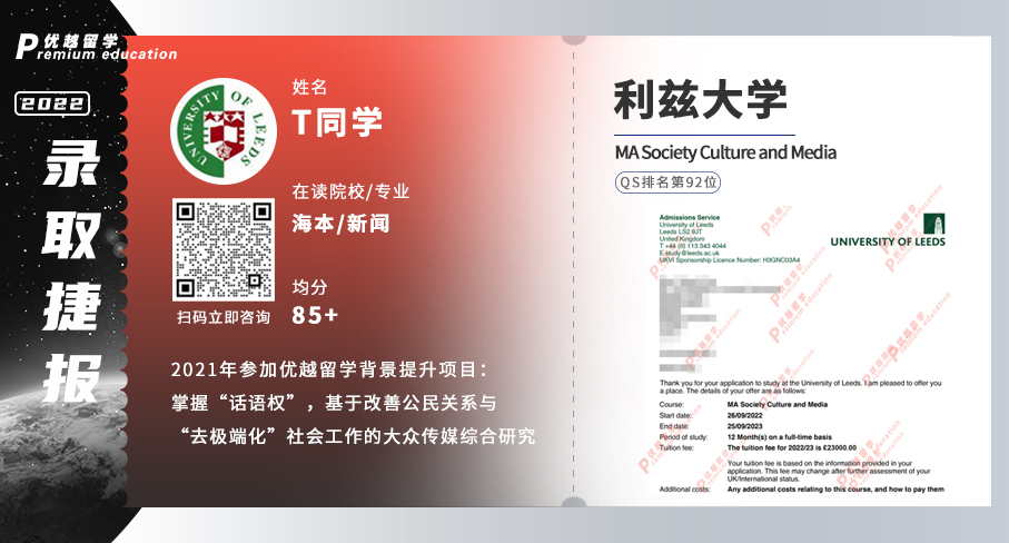 A同學(xué):211院校、法學(xué)、均分87、雅思7.5因在背景和均分上沒有明顯的優(yōu)勢,優(yōu)越為學(xué)生規(guī)劃了法學(xué)視角下的《網(wǎng)絡(luò)犯罪問題研究》的科研項(xiàng)目,拿到了導(dǎo)師的推薦信,讓文書也更豐富,為申請爭取了非常大的助力,最終獲得了offer。