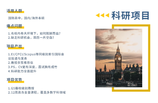 抓緊所有時間提高背景,把握每項可以提升背景的機會。優(yōu)越留學(xué)推出碩士申請中的軟背景提升的科研項目以及實習(xí)項目等產(chǎn)品幫,能助同學(xué)在申請中更加有保障。如果各位同學(xué)有需要,可以跟優(yōu)越的顧問老師咨詢,顧問老師會幫同學(xué)們推薦合適的背景提升項目。