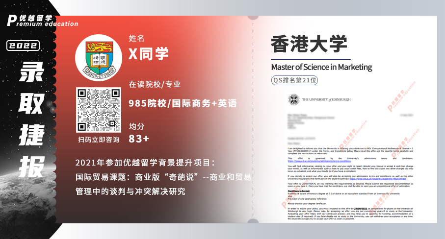 優(yōu)越留學作為英國留學高端品牌,一直致力于提升留學質(zhì)量與留學體驗,在英國留學領域成績斐然!2022年優(yōu)越留學產(chǎn)品升級,推出更適合知名院校申請需求的《全新“至臻系列+至遠系列”留學服務產(chǎn)品》請點擊進入了解詳情,幫助學生申請到理想院校!