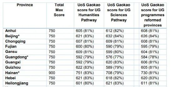 南安普頓大學(xué)藝術(shù)與人文學(xué)院的本科課程可使用高考成績直接申請(qǐng),各省份高考成績要求不同,總分范圍大概是73%-85%,也就是說比如滿分750分的全國卷,最低需要考到548分就可申請(qǐng)。具體要求可到官網(wǎng)查看。